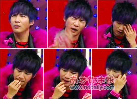 在后面的節(jié)目中,對于男女主持的提問,大張偉咬手指、挖眼屎,拿紙巾擦汗,最后索性脫掉了外套喃喃自語,“我今天怎么了!”完全不在狀態(tài)(見上圖)。大鵬終究也被逼“毛”了,突然起身丟下提問稿憤怒離場,直播節(jié)目被迫中斷。這段視頻曝光后,不少網友認為大張偉的狀況是犯了毒隱,“這家伙肯定是溜冰(指吸食某種毒品)了”。(記者 黃銳海 實習生 劉文斯)