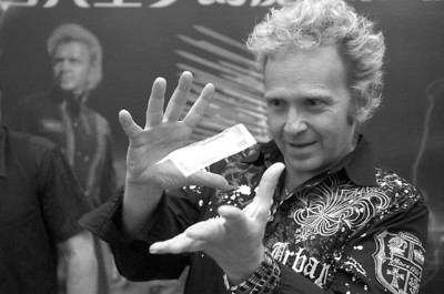 昨天下午,與哈拉利相比顯得少言寡語的蓋洛斯,卻用實際行動成了攝影、攝像機(jī)的焦點(diǎn),掉包記者緊攥在手里的硬幣,讓皮夾子憑空著火,燒毀的錢幣卻赫然出現(xiàn)在未曾開封的小包裝白糖中——蓋洛斯的每一個“節(jié)目”都頗有上春晚與劉謙一較高下的潛質(zhì)。事實上,蓋洛斯也是美國電視屏幕上家喻戶曉的明星,他的“今夜秀”連續(xù)創(chuàng)下收視佳績,早在劉謙之前,就成為真正意義上的 “魔術(shù)明星”。蓋洛斯的 “粉絲”還包括簡·方達(dá)、阿諾德·施瓦辛格、達(dá)斯汀·霍夫曼、艾迪·墨菲、羅賓·威廉姆斯、尼古拉斯·凱奇、湯姆·漢克斯等,星光璀璨,不勝枚舉。