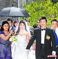 昨早9時(shí)男方以6輛奔馳車(chē)隊(duì)至女方家迎娶,親友幫新娘撐的卻是黑傘,依民間習(xí)俗,一般新娘出嫁時(shí),親友會(huì)以米篩遮陽(yáng),如果是撐黑傘,多半意味新娘腹中有喜。問(wèn)新人是否有喜時(shí),他們只說(shuō)“謝謝”,未正面回答。證婚人鳳凰衛(wèi)視主席劉長(zhǎng)樂(lè)入場(chǎng)時(shí),被媒體問(wèn):“小孩是男的?女的?”他也未作答。