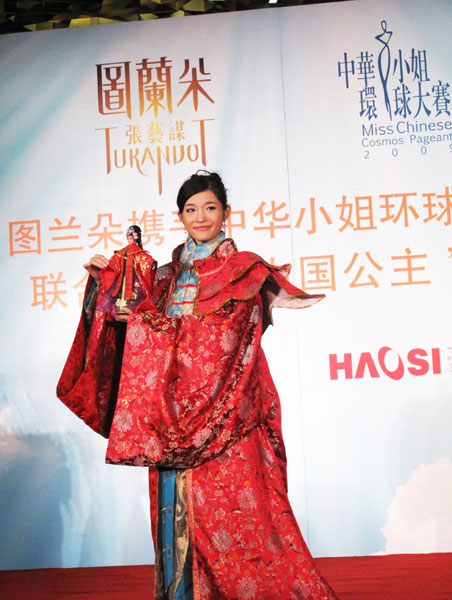 鳥巢版《圖蘭朵》是著名導(dǎo)演張藝謀率北京奧運會開幕式原班人馬打造的又一鴻篇巨制,中國公主是普契尼《圖蘭朵》中的經(jīng)典,也是這部歌劇塑造的重點人物。首演準備工作進入倒計時之際,《圖蘭朵》攜手“中華小姐環(huán)球大賽”選拔出了“中國公主”代言這部曠世著作。鳳凰衛(wèi)視主持人沈星主持了當天的活動。
