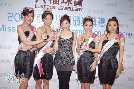 中新網(wǎng)11月6日電 出爐亞姐冠軍許瑩、亞軍王希瑤、季軍許嘉慧及友誼小姐張加慧,昨天中午出席后冠及首飾領獎活動。港姐楊寶玲也專程回港為亞姐冠軍加冕。