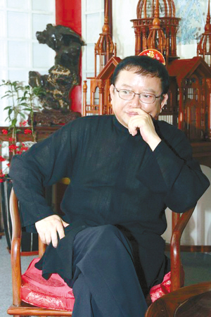 記者問王剛收藏品占他全部家產(chǎn)的多少,沒想到王剛停頓一下后回答:“百分之七十吧。我家除了一件沙發(fā),全部是古董!闭f到古家具,王剛興致很高,“我睡的那張雕花架子床有180年歷史。屋里還有一張羅漢床,三面有圍擋,沒想到是為兒子買的。兒子不會走路時在上面玩最安全。圍擋上還刻著房子、樹木等浮雕,兒子特喜歡。”