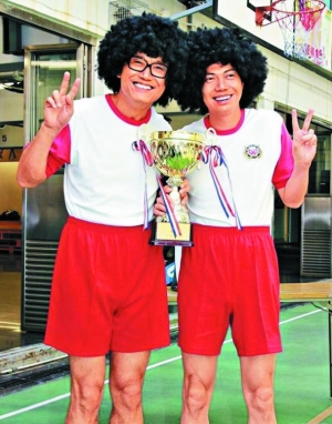 51歲的苗僑偉和41歲的謝天華前日在一間小學(xué)續(xù)拍無線新劇《老公萬歲》,二人為了搞笑戲分,不惜自毀形象,穿著運(yùn)動校服配爆炸頭出鏡,謝天華更提議與苗僑偉將褲頭拉高束腰,“越薯(粵語指傻里傻氣)越好”。兩人在《學(xué)警狙擊》中的“Laughing哥”和“孝哥”角色都以型男著稱,這次自拆招牌,兩人不但不擔(dān)心形象受損,謝天華還搞笑地表示,“我還擔(dān)心粉絲更多了呢!”苗僑偉透露戲中尚有多個(gè)搞笑造型,比這個(gè)爆炸頭更出彩,希望能帶給觀眾驚喜。