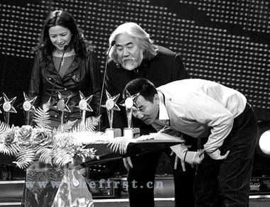 頒獎現(xiàn)場還出現(xiàn)了許多花絮。在陳建斌準(zhǔn)備領(lǐng)取 “中國劇風(fēng)尚懷舊英雄劇創(chuàng)新角色”時(shí),擺在頒獎嘉賓張紀(jì)中和何晴面前的卻有一排獎杯,“我先給你找找啊,別給錯(cuò)了”,張紀(jì)中只得挨個(gè)尋找,無奈現(xiàn)場的燈光偏暗,張紀(jì)中拿起其中一個(gè)問何晴“是這個(gè)嗎?”何晴看了半天,搖了搖頭,無奈之下,張紀(jì)中招呼等在一旁領(lǐng)獎的陳建斌自己來找獎杯!斑有這樣的呢,領(lǐng)獎嘉賓自己給自己找獎杯!边B主持人李斌都看不過去了。想必這個(gè)獎對陳建斌來說可是“來之不易”。記者 張碩 趙風(fēng)果 攝
