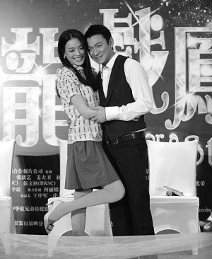 在《游龍戲鳳》中,劉德華飾演城中富豪,舒淇變身賭場(chǎng)發(fā)牌員,兩人演繹了一段浪漫情緣。這也是他們繼劉偉強(qiáng)的《衛(wèi)斯理之藍(lán)血人》后再度攜手,只不過(guò),《藍(lán)血人》中兩人毫無(wú)感情瓜葛,但在《游龍戲鳳》中卻是專(zhuān)門(mén)談情說(shuō)愛(ài)。昨日劉德華的右手無(wú)名指上戴著一枚戒指,和舒淇左手上的明顯是一對(duì)。對(duì)此,華仔解釋說(shuō)戒指“只是片中道具”。娛樂(lè)記者們不肯輕易放過(guò)他,有人大聲問(wèn):“如果舒淇嫁給你,你會(huì)答應(yīng)嗎?”劉德華隨即把難題拋給了舒淇:“你不知道嗎?我向她求過(guò)兩次婚呢,可都被拒絕了!辈贿^(guò)舒淇卻眼含深情地表白道:“其實(shí)他是我們所有女人心目中最好的男人!