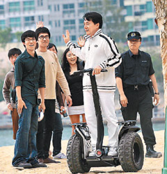 成龍忙拍電影、忙公益慈善,環(huán)保也是他重視的課題,由他代理的塞格威(SEGWAY)單人雙輪電動滑板車,將成為圣淘沙主要代步工具,昨天成龍抵達(dá)到新加坡推廣這活動,目前圣淘沙引進(jìn)50臺,并計劃在兩年內(nèi)增加至200臺,讓旅客隨意往來島上各景點(diǎn)。