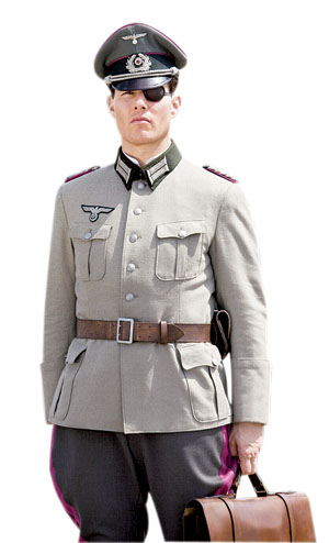 克魯斯飾演德國陸軍上校施陶芬堡。二戰(zhàn)讓他失去了左眼、右臂以及左手的兩個手指頭。隨后,他成為刺殺希特勒行動的執(zhí)行者。