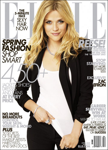 奧斯卡影后瑞茜·威瑟斯彭化身干練女主管裝扮登上了《ELLe》封面4月號(hào)封面,這次雜志主要對(duì)瑞茜·威瑟斯彭的離婚生活和現(xiàn)在的近況進(jìn)行了深入的采訪,我們期待這位粉紅俏佳人的成熟吧。