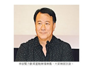 據(jù)臺(tái)灣“今日新聞”報(bào)道,王晶與文雋等資深電影人先后炮轟周星馳,一手提拔周星馳入電影圈的影壇大哥李修賢24日也開(kāi)腔數(shù)落星爺,坦言在圈中除了周星馳,個(gè)個(gè)都是朋友。李修賢還意所有指地說(shuō),做人要忠厚,錢不是萬(wàn)能,朋友更寶貴。并稱以后若有機(jī)會(huì)見(jiàn)到周星馳,他仍會(huì)與對(duì)方打招呼,不是仇人,也不是朋友。