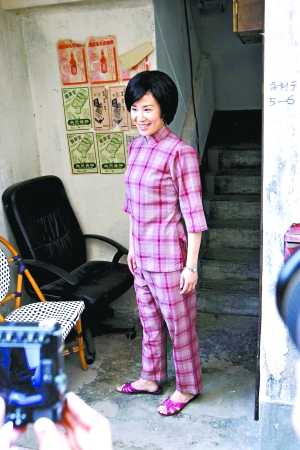 出現(xiàn)在片場的吳君如穿一身格子套裝,很有鄉(xiāng)土味。她說母親來探班的時(shí)候也嚇了一跳,沒想到在劇中的造型是這樣的。但吳君如說片中的角色其實(shí)很像自己,雖然是一個(gè)很悲情的角色,但她很希望電影中的這種上世紀(jì)60年代人人為我,我為人人的精神能讓大家溫故知新。