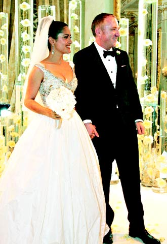 據(jù)臺灣《聯(lián)合報》報道,42歲的薩爾瑪·海耶克今年情人節(jié)與弗朗索瓦·昂利·皮諾特低調(diào)地在巴黎公證結(jié)婚,并在25日于水都威尼斯再度步上紅毯。婚禮于當?shù)匾粭?8世紀的歌劇院進行,薩爾瑪與弗朗索瓦一歲半的女兒則當花童。