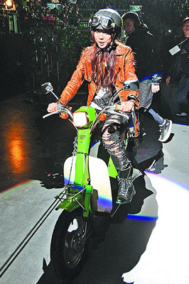 昨演唱完安可曲后,她特地戴上安全騎士帽,以皮衣造型騎機車回舞臺,由于該機車當年由鄧麗君代言,是商家珍藏的骨董,價值約40萬元,這次特地為演唱會出借,讓她騎車時相當小心翼翼。
