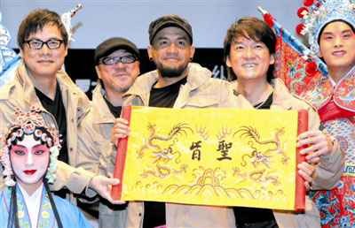 昨天,一場以京劇元素引出的縱貫線北京演唱會發(fā)布會在皇家糧倉舉行,羅大佑、李宗盛、周華健和張震岳悉數(shù)現(xiàn)身為北京站演唱會造勢。臺北首場演出大獲成功后,成龍自薦要當表演嘉賓,李宗盛笑言“還以為那是恐嚇信”,周華健更添油加醋地大呼“我們一定要加強保安,他上臺可以,但是不能唱歌”。