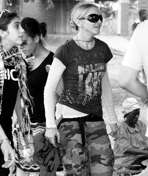 麥當(dāng)娜這次的馬拉維之行,除了帶上其領(lǐng)養(yǎng)的第一個(gè)馬拉維孩子大衛(wèi)之外,還將自己的親生女兒露迪斯帶在身邊,大打親情牌。