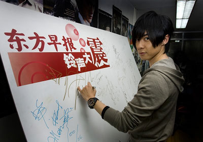 此次來滬做簽售的唐禹哲人氣直逼臺(tái)灣偶像團(tuán)體“飛輪!保缜八虺鲅荨督K極一班》里雷克斯一角而嶄露頭角,更被誤認(rèn)為是“飛輪!敝械囊粏T。其實(shí)私底下與“飛輪海”成員汪東城關(guān)系很“鐵”的唐禹哲,對(duì)于最近傳聞兩人鬧不和也給予了否認(rèn),但他坦言,兩人在認(rèn)識(shí)最初,的確有一段互看不爽的日子,“我們是做模特認(rèn)識(shí)的,記得剛認(rèn)識(shí)時(shí),彼此的印象都不太好,我覺得他這家伙是個(gè)很愛出風(fēng)頭的人,很愛耍帥,而他又看我不太愛講話,以為我在耍酷。大家都看不順眼對(duì)方,但是后來拍戲相處之后,彼此又有了進(jìn)一步的了解,發(fā)現(xiàn)我們還是有很多相似的地方,如一樣愛工作、家庭,孝順?gòu)寢尩,所以就成了好朋友。我記得我們成為好朋友時(shí)都是默默無聞、沒什么名氣的藝人,那時(shí)我們就相互給對(duì)方打氣,一直到現(xiàn)在還是會(huì)毫不猶豫地為對(duì)方鼓勵(lì)下去!庇浾 李懿