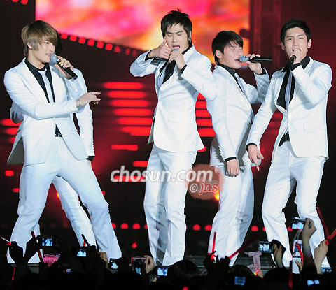 中新網(wǎng)5月6日電 據(jù)香港《明報》報道,韓國組合“東方神起”正于日本舉行巡回演唱會“東方神起 4th LIVE TOUR 2009 The Secret Code”,成員細亞俊秀日前于彩排其間腳腕受傷。但細亞俊秀仍堅持坐著輪椅登上舞臺演唱了歌曲,雖然沒法表演舞蹈,但仍獲得如雷掌聲支持。