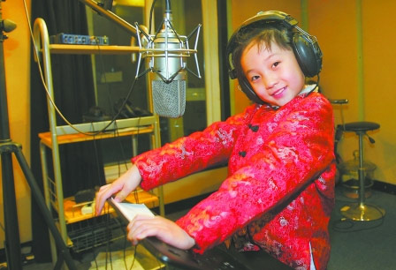 昨晚6點30分,林妙可在媽媽的陪同下飛抵成都,這次林妙可的成都之行被安排得滿滿當(dāng)當(dāng)。據(jù)林媽媽說,母女倆下飛機后飯都沒顧上吃,將就應(yīng)付了幾個漢堡就趕到了錄音室。據(jù)悉,在四川電視臺春節(jié)大型特別節(jié)目《我們一起過年》中,林妙可將攜手抗震小英雄林浩壓軸出場,演唱歌曲《春節(jié)序曲》。昨晚,在錄音棚內(nèi),林妙可戴上耳麥,雙手舉著歌詞,一副小大人的模樣,但此時的她卻沒有奧運會開幕式演唱時的自信,噘著小嘴,有點不情愿的樣子。雖然有點不自信,但林妙可還是在工作人員的指導(dǎo)下很認(rèn)真地唱了起來,只有四句歌詞,林妙可錄完竟花了半個小時的時間。好不容易工作結(jié)束,小妙可又?jǐn)[出一副認(rèn)真的樣子,拿起筆記起了歌詞,“我想把這首歌記住,然后在臺上演唱!