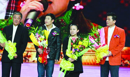 在頒獎環(huán)節(jié),趙本山終于上了臺,他帶著小沈陽、毛毛和畢福劍一起捧回了語言類節(jié)目的一等獎。在談獲獎感言時,趙本山說:“今年春晚對我來說最關(guān)鍵。”他覺得,最關(guān)鍵的原因有兩個,一個是時間緊,“這個小品是在離春節(jié)12天的時候才弄出來的。第一個小品不夠好被斃了,我感謝斃了第一個小品,不然就沒現(xiàn)在這個了。”另外一個是徒弟火了,“最興奮的是,我兩個徒弟站在舞臺上了!壁w本山笑著說。