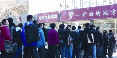 在影視界,“中戲”、“上戲”、“北電”呈三足鼎立之勢(shì),其地位無人可以撼動(dòng),人稱“明星搖籃”。近年來這三所學(xué)校藝術(shù)考試持續(xù)升溫,報(bào)考人數(shù)屢創(chuàng)新高。在北電,表演專業(yè)一直被認(rèn)為是最難考的專業(yè),雖然今年的招生人數(shù)由往年的30人增加到75人,報(bào)名人數(shù)卻高達(dá)4234人,淘汰率為98.2%。即便知道面臨著如此殘酷的競爭,可那些懷揣著明星夢(mèng)想的俊男靚女們,仍不遠(yuǎn)萬里,從五湖四海為了一個(gè)共同的目標(biāo)走到了一起,懷著明星夢(mèng)擠上這座獨(dú)木橋。
