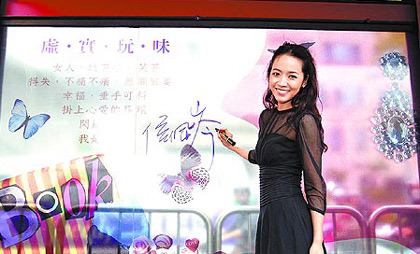 中新網(wǎng)2月27日電 侯佩岑昨?qū)人最新畫作《虛實(shí)玩味》獻(xiàn)給臺北市公交車候車亭,她興奮說:“這幅畫畫了2天,能夠?yàn)榕_北市增添顏色,真的很開心!彼蛩囆g(shù)間接與格林文化發(fā)行人郝廣才結(jié)緣,是否被他的才華吸引?侯佩岑說:“我們不熟啦,但我知道他很有才氣!