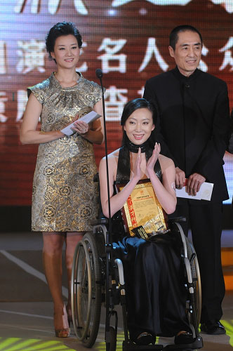 雖然執(zhí)導(dǎo)國慶60周年焰火晚會重任在肩,但是昨天張藝謀依然來到盛典現(xiàn)場,領(lǐng)取了“中國最杰出成就榮譽”和“中國公眾滿意度最佳演藝名人”榮譽,并擔(dān)任頒獎嘉賓。更為難得的是,獲得“中國年度舞蹈最佳表現(xiàn)女演員”提名的舞蹈演員劉巖也坐著輪椅出現(xiàn)在現(xiàn)場。這是手術(shù)之后的劉巖首次公開亮相公眾場合。劉巖原本是北京奧運會獨舞《絲路》的A角,但是由于車臺操作失誤,造成劉巖從近3米高空踩空、墜落,導(dǎo)致她嚴(yán)重受傷,并為此付出了無可挽回的代價……