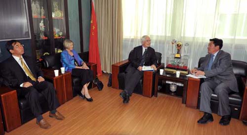 王永前向新西蘭客人重點介紹了甘肅省發(fā)展循環(huán)經(jīng)濟及落實國務(wù)院辦公廳關(guān)于進一步支持甘肅經(jīng)濟社會發(fā)展47條意見的情況,并就甘肅省如何進一步與基督城加強合作與交流交換了意見。他說,在《甘肅省與克萊斯特徹奇市人才交流合作備忘錄》的基礎(chǔ)上,甘肅將繼續(xù)邀請克市及塞爾溫區(qū)派遣學(xué)員參加甘肅省國際交流員研習(xí)班,并接受新西蘭學(xué)生利用中國政府獎學(xué)金到蘭州高校學(xué)習(xí)深造。