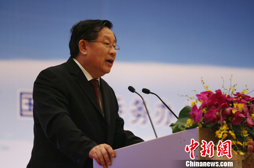 第六屆世界華人論壇于7月26日至27日在廣州舉行,出席本屆論壇的海內(nèi)外代表350多人,其中海外代表190人,來(lái)自美國(guó)、加拿大、英國(guó)、德國(guó)等25個(gè)國(guó)家和地區(qū),大多數(shù)為新能源、生物醫(yī)藥、金融、食品工程、信息通訊等領(lǐng)域的學(xué)術(shù)權(quán)威出席本屆論壇。圖為全國(guó)政協(xié)副主席、國(guó)家科技部部長(zhǎng)萬(wàn)鋼在大會(huì)開幕式上致辭。 中新社發(fā) 蘇丹 攝