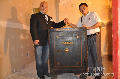 9月17日當(dāng)?shù)貢r(shí)間下午一點(diǎn),甫抵達(dá)舊金山,訪問團(tuán)在旅美陽和總會館主席盧偉棠、旅美人和會館主席彭書城、三邑總會館主席暨展圖等僑領(lǐng)的陪同下,馬不停蹄地拜訪了旅美人和會館、旅美陽和會館、五洲致公堂,與僑領(lǐng)座談交流,宣傳推介廣東華僑博物館,并考察會館建筑、歷史圖片和文獻(xiàn)。五洲致公堂總主席周國祥表示,今后要帶社團(tuán)的年輕一代參觀廣東華僑博物館,學(xué)習(xí)了解華僑歷史,并希望該會收藏的孫中山先生當(dāng)年在舊金山從事革命活動使用過的椅子、辦公臺和籌款用的保險(xiǎn)柜、以及一些較有歷史價(jià)值的圖片、實(shí)物等可以在廣東華僑博物館展示。陽和總會館劉應(yīng)同顧問當(dāng)場捐贈了一張其父親珍藏1945年董必武隨聯(lián)合國代表團(tuán)到訪舊金山的珍貴照片。其他僑領(lǐng)們紛紛表示,會積極協(xié)助廣東華僑博物館收集華僑實(shí)物和資料。