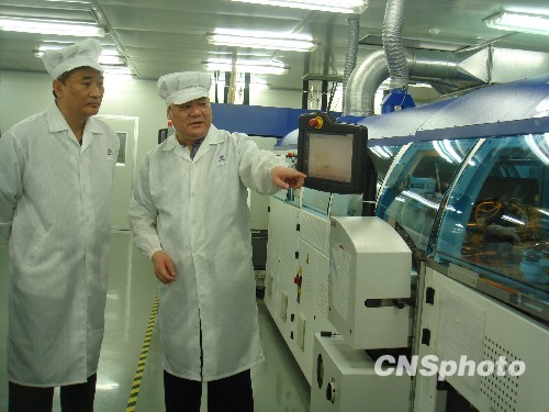 9月7日,由國務院僑辦、全國政協(xié)港澳臺僑委員會、致公黨中央、中國僑聯(lián)組成的維護僑商投資權益聯(lián)合調(diào)研組,考察了桂林鴻瑞科技發(fā)展有限公司,桂林西麥生物技術開發(fā)有限公司和桂林留學人員創(chuàng)業(yè)園等幾家僑資企業(yè)。圖為中國僑聯(lián)副主席李祖沛(左)參觀桂林鴻瑞科技發(fā)展有限公司的光盤生產(chǎn)車間。 中新社發(fā) 歐惠蘭 攝