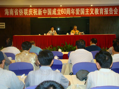 中新網(wǎng)9月9日電 9月2日,海南省僑聯(lián)在海口市美華荷泰酒店舉辦“慶祝新中國(guó)成立60周年愛(ài)國(guó)主義教育報(bào)告會(huì)”,報(bào)告會(huì)由海南省僑聯(lián)黨組書(shū)記、主席何云霞主持,邀請(qǐng)海南省委黨校(省行政學(xué)院、省社會(huì)主義學(xué)院)黨委副書(shū)記、省行政學(xué)院院長(zhǎng)、省委黨校副校長(zhǎng)廖遜主講,省僑聯(lián)、省僑聯(lián)下屬社團(tuán)、?诘貐^(qū)僑聯(lián)干部50多人參會(huì)。(海南僑聯(lián))
