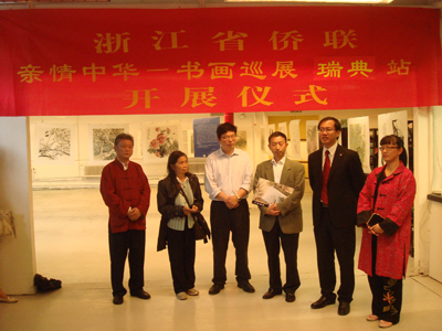 中新網(wǎng)9月11日電 在新中國成立60周年之際,應(yīng)瑞典瑞京華人協(xié)會(huì)、丹麥中華工商聯(lián)合協(xié)會(huì)、挪威浙江華人華僑聯(lián)誼總會(huì)等僑團(tuán)的邀請,8月21日至9月2日,浙江省僑聯(lián)聯(lián)合浙江省逸仙書畫院,在浙江省僑聯(lián)黨組成員、秘書長張維仁帶領(lǐng)下,組織省內(nèi)知名畫家和瑞安、諸暨僑聯(lián)主席等一行6人赴瑞典、丹麥、挪威開展以“親情中華——書畫巡展”為主要內(nèi)容的文化交流訪問。