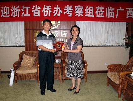 在雙方座談會上,鐘志英代表廣西自治區(qū)僑辦對浙江省僑辦學(xué)習(xí)考察組到南寧表示熱烈歡迎,并向他們簡要介紹了廣西的區(qū)情、僑情以及廣西開展僑務(wù)工作和廣西北部灣經(jīng)濟區(qū)開放開發(fā)的情況。她表示,廣西僑辦和浙江僑辦在今后可加強多方面交流合作,共同促進(jìn)新形勢下僑務(wù)工作的開展。