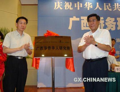 廣西僑務(wù)理論研究的重要基地——廣西華僑華人研究所9月24日在南寧掛牌成立,廣西壯族自治區(qū)政協(xié)副主席梁春祿、國務(wù)院僑辦政策法規(guī)司副司長范如松為研究所揭牌,廣西壯族自治區(qū)僑辦主任李漢金、廣西社會科學(xué)院院長呂余生等出席活動(dòng)。此為廣西自治區(qū)僑辦充分利用廣西社科院東南亞研究所的資源和力量,發(fā)展廣西的僑務(wù)理論尤其是對華僑華人研究工作的重要舉措。