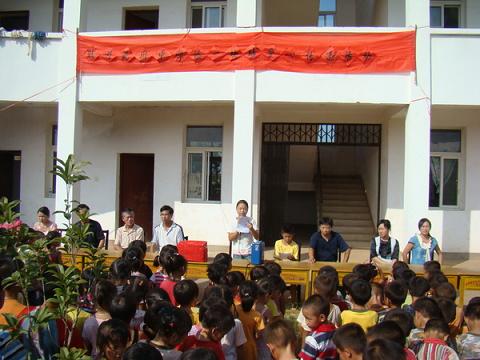 中新網(wǎng)10月19日電 為響應(yīng)中國(guó)僑聯(lián)關(guān)于動(dòng)員海內(nèi)外僑界力量,積極援建北川中學(xué)的號(hào)召,弘揚(yáng)僑愛心小學(xué)“幫助別人,愛心無限”的優(yōu)良傳統(tǒng),6月11日,江西省僑聯(lián)在泰和縣石山鄉(xiāng)“輝芬僑心小學(xué)”落成典禮上,拉開了全省僑心學(xué)校開展“我為北川中學(xué)添一塊磚”的愛心傳遞活動(dòng)的序幕,前來參加慶典的領(lǐng)導(dǎo)嘉賓與輝芬僑心小學(xué)的全體師生一道為援建北川中學(xué)奉獻(xiàn)自己的一片愛心。