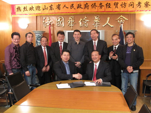 雙方一致同意,今后進(jìn)一步加強(qiáng)信息交流,互相支持,開展實質(zhì)性合作。山東省海外交流協(xié)會副會長史進(jìn)與華僑華人會會長陳勝武在友好關(guān)系協(xié)議書上簽字。