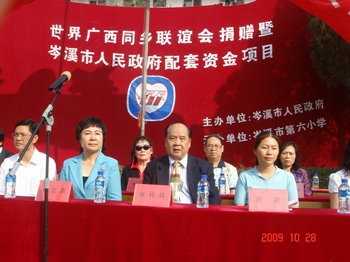 廣西自治區(qū)僑辦副主任鐘志英、副處長藍(lán)勝,世界廣西同鄉(xiāng)聯(lián)誼會主席張桂祥等6位嘉賓,岑溪市黨委、政府及教育局、僑辦等相關(guān)部門領(lǐng)導(dǎo)出席了活動。