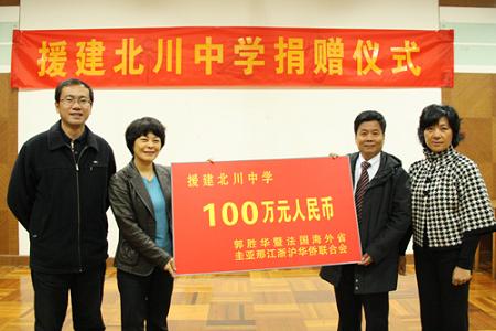 截止目前,浙江省僑胞已為援建北川中學捐資近千萬。