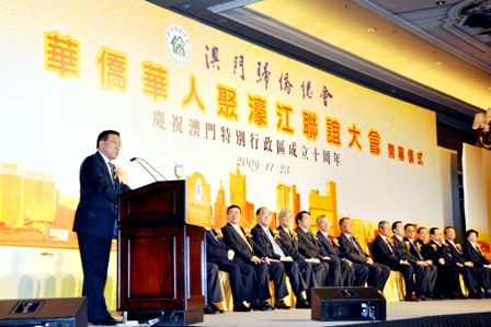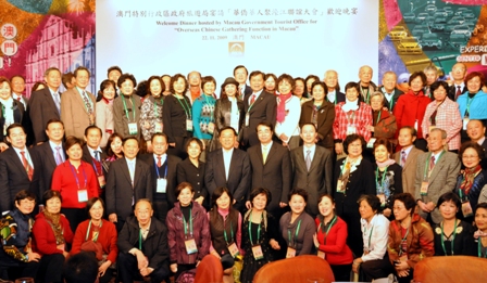 中新網(wǎng)11月25日電 據(jù)中國(guó)僑聯(lián)網(wǎng)站消息,11月23日至24日,由澳門(mén)歸僑總會(huì)主辦的“2009華僑華人聚濠江聯(lián)誼大會(huì)”在澳門(mén)舉行。中國(guó)僑聯(lián)主席林軍,國(guó)務(wù)院僑辦副主任許又聲以及來(lái)自世界56個(gè)國(guó)家和地區(qū)的華僑華人代表以及內(nèi)地僑界嘉賓共1000多人應(yīng)邀出席。澳門(mén)特別行政區(qū)行政長(zhǎng)官何厚鏵到會(huì)講話(huà),中央人民政府駐澳門(mén)聯(lián)絡(luò)辦副主任徐澤、外交部駐澳門(mén)特派員盧樹(shù)民等到會(huì)祝賀。