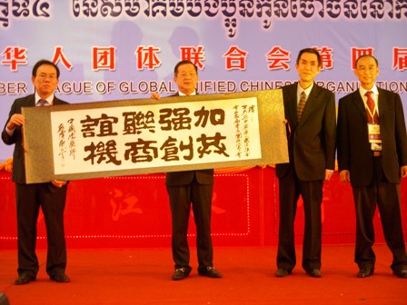 會議期間,中國僑聯(lián)代表團與中國駐柬埔寨大使張金鳳及柬華理事會會長、籌委會主席楊啟秋,柬華人參議員劉明勤、徐光秀,洪森總理顧問方僑生等著名僑領(lǐng)進行座談。代表團利用這個機會向僑胞們介紹了中國僑聯(lián)的立會宗旨、組織情況和工作內(nèi)容,并表達(dá)了要加強與柬華社會聯(lián)系、更好為僑胞服務(wù)的愿望。