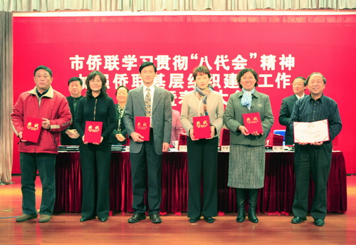 中新網(wǎng)12月11日電 據(jù)上海市僑聯(lián)消息,12月8日下午,上海市僑聯(lián)在長(zhǎng)寧區(qū)圖書館禮堂召開市僑聯(lián)學(xué)習(xí)貫徹“八代會(huì)”精神加強(qiáng)僑聯(lián)基層組織建設(shè)工作交流暨表彰大會(huì)。中國(guó)僑聯(lián)副主席、市政協(xié)副主席、市僑聯(lián)主席吳幼英,市僑聯(lián)黨組書記李葳萍等出席大會(huì),頒發(fā)2009年區(qū)縣僑聯(lián)優(yōu)秀調(diào)研報(bào)告獎(jiǎng),并為優(yōu)秀聯(lián)絡(luò)員和第三批“特色僑之家”頒獎(jiǎng)、授牌。