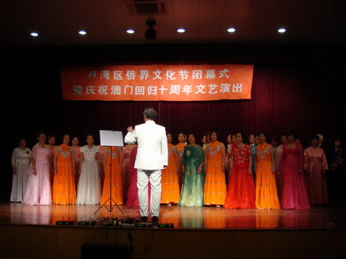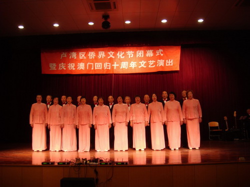 一首優(yōu)美動(dòng)聽(tīng)的《七子之歌—澳門(mén)》拉開(kāi)了盧灣區(qū)僑界文化節(jié)閉幕式暨慶祝澳門(mén)回歸十周年文藝演出的序幕,來(lái)自區(qū)內(nèi)僑界親情中華藝術(shù)團(tuán)、五里社區(qū)、打浦社區(qū)、SUNDAY合唱團(tuán)的各種歌曲、大合唱、時(shí)裝表演、器樂(lè)演奏、上海說(shuō)唱等節(jié)目你方唱罷我登場(chǎng),充分展示了盧灣區(qū)僑界文化節(jié)活動(dòng)的豐富多彩,充分展示了盧灣區(qū)僑界群眾的良好風(fēng)貌。