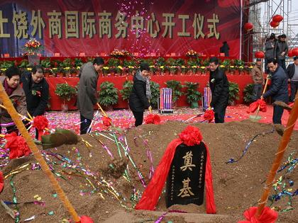 最后,由周錦宣布上饒外商國際商務(wù)中心正式開工,并為工程奠基,頓時,鞭炮齊鳴、彩球飄舞、鑼鼓喧天、禮花漫天開放,整個典禮儀式氣氛達(dá)到了高潮。