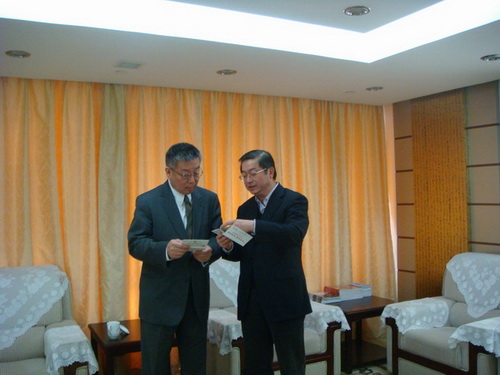 老朋友相見,格外高興。胡思源向崔明華介紹了紐約州立大學(xué)在08年8月支助150名大學(xué)生赴美學(xué)習(xí)的情況,以及此次帶領(lǐng)紐約州立大學(xué)校長(zhǎng)老師和200位美國(guó)學(xué)生赴四川地震災(zāi)區(qū)進(jìn)行學(xué)習(xí)交流等情況。