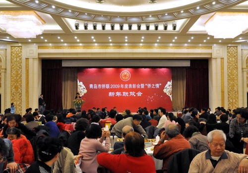 中新網(wǎng)1月20日電 據(jù)青島市僑聯(lián)消息,1月16日下午,山東省青島市僑聯(lián)在黃海飯店隆重舉辦了2009年度表彰會暨“僑之情”新年聯(lián)歡會。來自青島市各條戰(zhàn)線的400余名歸僑僑眷代表、駐青海外僑胞和僑聯(lián)工作者歡聚一堂,表彰先進,暢敘友情,喜迎新春。