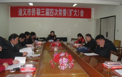 中新網(wǎng)1月21日電 據(jù)貴州省僑聯(lián)消息,2010年1月15日,貴州省遵義市僑聯(lián)召開三屆四次常委(擴(kuò)大)會(huì)議。遵義市僑聯(lián)主席劉素珍,兼職副主席彭澤君,市僑聯(lián)三屆常委出席會(huì)議,市僑聯(lián)三屆顧問,市僑界政協(xié)委員列席會(huì)議。市僑聯(lián)副主席兼秘書長季潔主持會(huì)議。