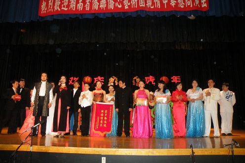 中新網(wǎng)1月25日電 據(jù)湖南省僑聯(lián)消息,旅美湖南同鄉(xiāng)會(huì)與紐約華人社團(tuán)聯(lián)席會(huì)于當(dāng)?shù)貢r(shí)間1月23日在美國(guó)紐約皇后區(qū)江邦高中共同舉辦虎年春節(jié)慶祝晚會(huì)。湖南僑聯(lián)僑心藝術(shù)團(tuán)“親情中華”赴美慰問(wèn)演出團(tuán)的專業(yè)演出獲在場(chǎng)華僑華人好評(píng),現(xiàn)場(chǎng)掌聲不斷。