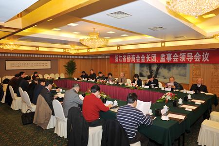 中新網(wǎng)1月29日電 據(jù)浙江僑聯(lián)網(wǎng)消息,2010年1月24日晚,浙江省僑商會在浙江世貿(mào)君瀾大飯店舉行會長團、監(jiān)事會領導會議。