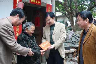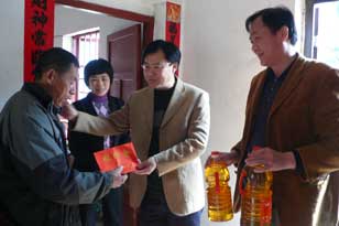 一來到仙游縣榜頭鎮(zhèn)印尼歸僑楊啟榮家,林澤春就帶領(lǐng)同行人員進屋察看他家那原瀕臨倒塌的土墻,當發(fā)現(xiàn)原來的那堵土墻已換成了磚墻時,連聲說,改造成磚墻到下大雨時再也不用擔心墻倒下來了。當細心的林澤春發(fā)現(xiàn)房間里很暗但沒有電燈,了解到因一人獨居沒有收入家中還沒通電時,立即交待隨行的鎮(zhèn)黨委書記,要多多關(guān)心困難歸僑,臨近春節(jié)沒有電生活會極不方便。村主任解釋說,電工已來他家兩次,都沒遇到人,保證今天晚上通上電,另外老楊的最低生活保障也已報批。當楊啟榮從林澤春手中接到慰問金時,感激之情不能言表。
