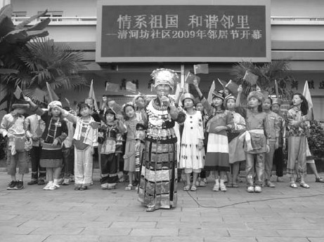 這次澳門回歸10周年,潘曼霞夫婦倆再次受到了邀請,潘曼霞由大女兒陪同,參加澳門十周年慶典。這次,老人再次帶去了嶄新的28套民族服裝。當澳門勞工子弟學校的學生們再次穿上潘曼霞新帶來的28套民族服裝,為老人載歌載舞,歡迎老人時,老人也很開心。