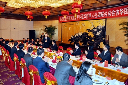 中新網2月11日電 據中國僑聯(lián)網站消息,2月10日,中國僑聯(lián)副主席董中原在北京首都大酒店會見了西班牙加泰羅尼亞華僑華人社團聯(lián)合總會訪華團一行17人。